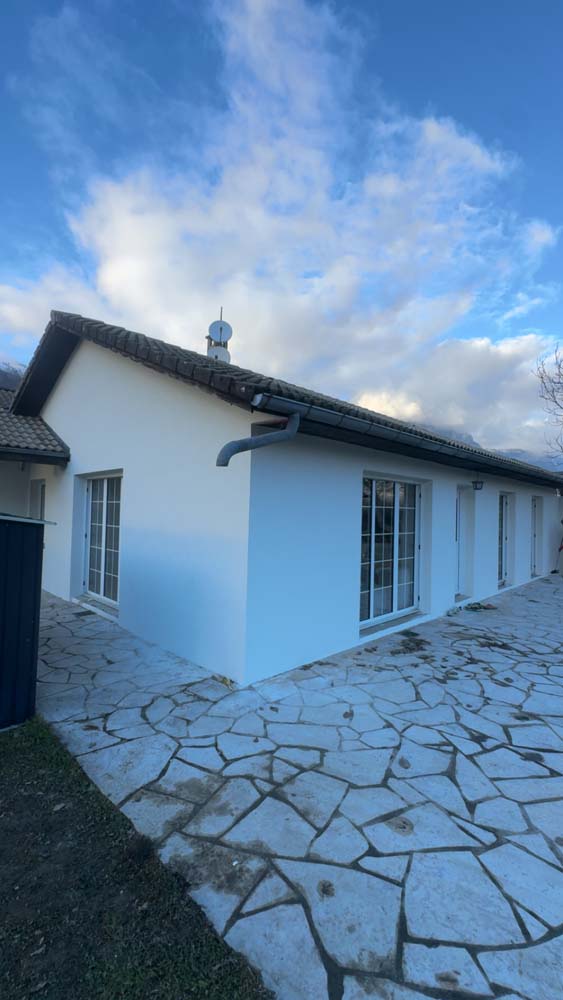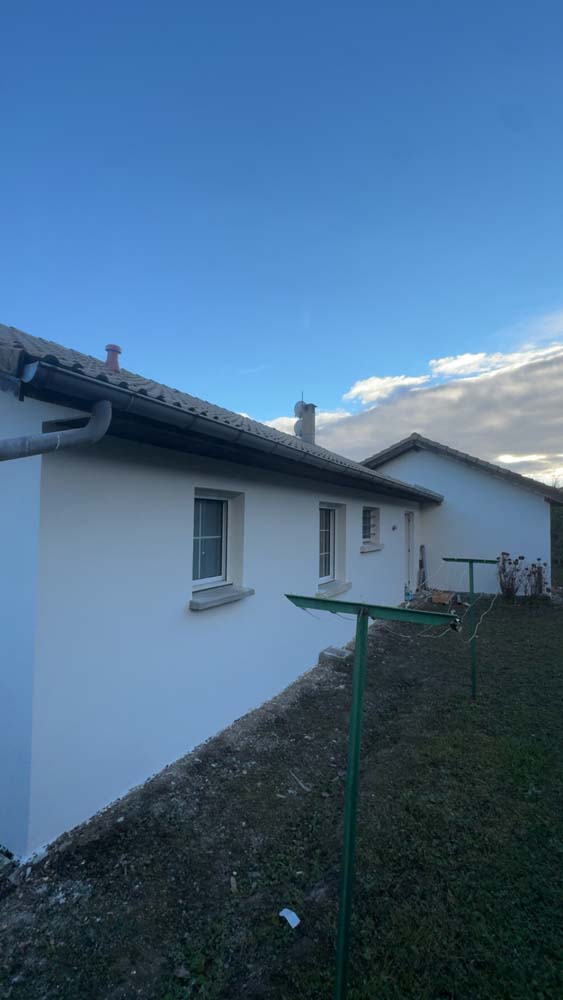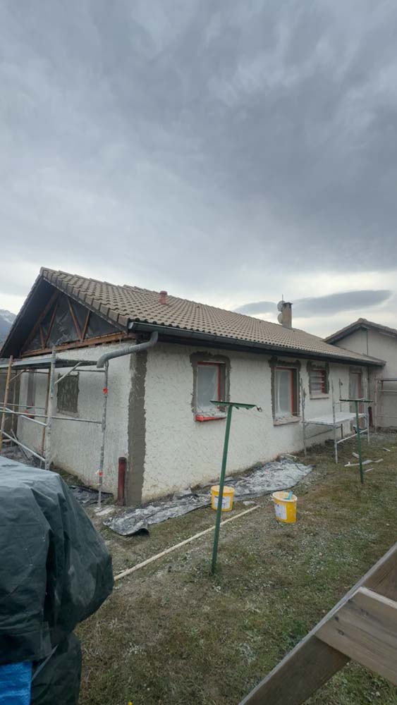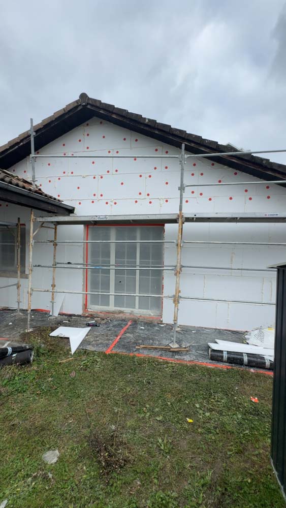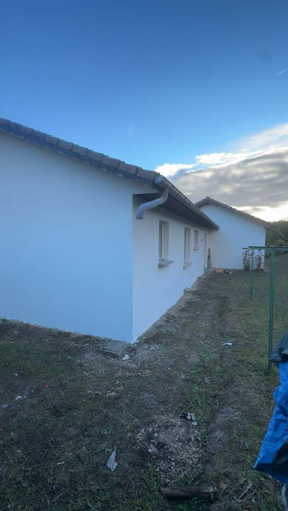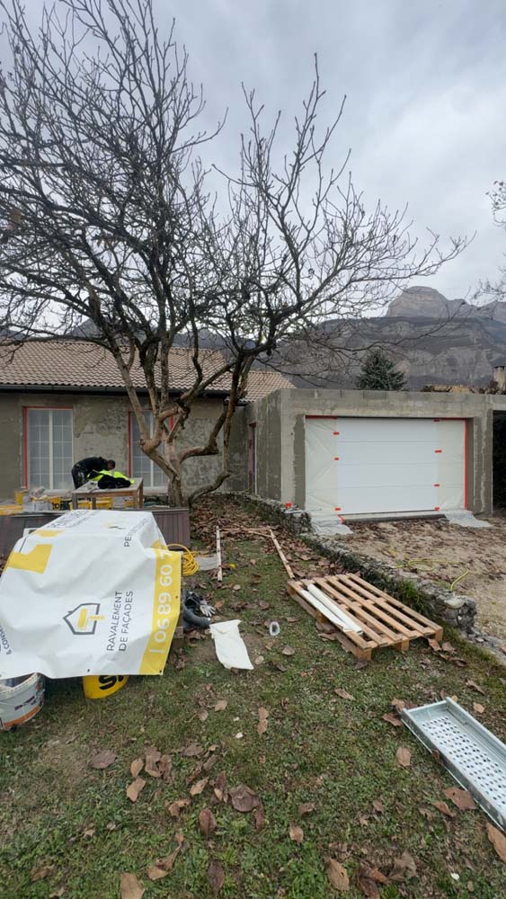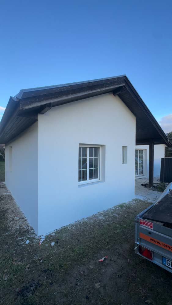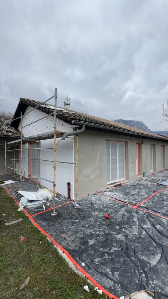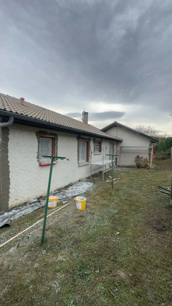 Travaux de ravalement de façade en deux couche de sous enduit et une dernière d’un crépi fin talocher grain 1,5 mm .