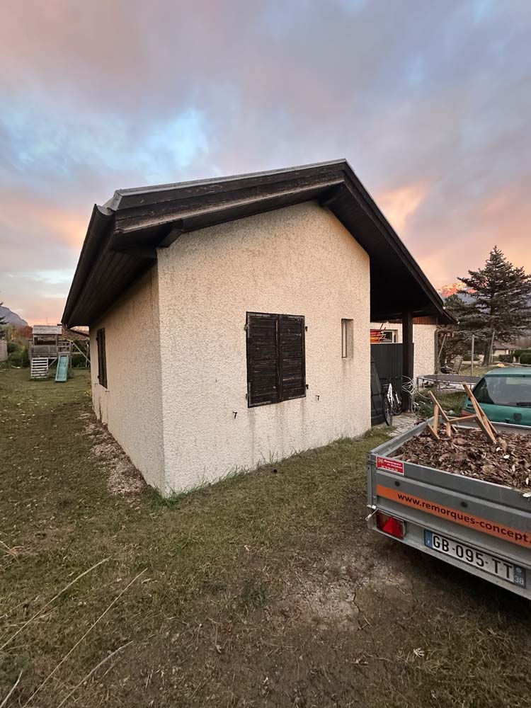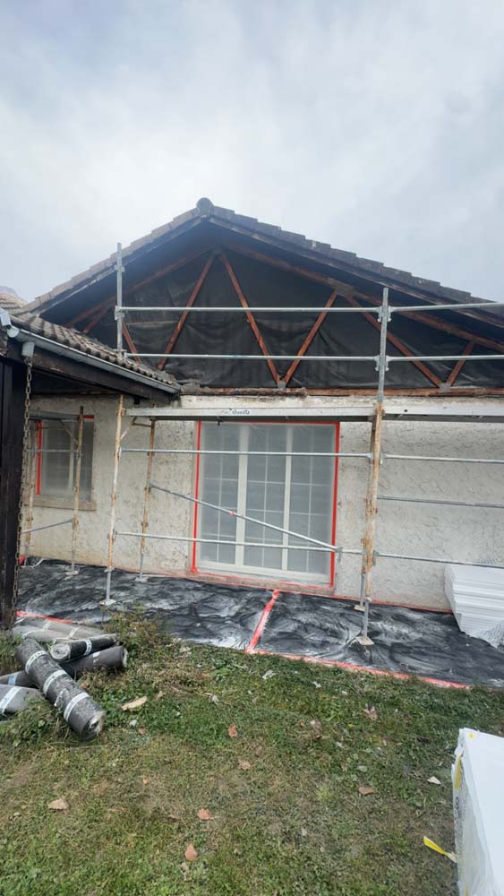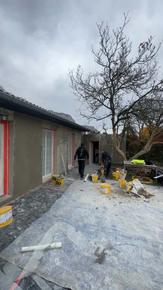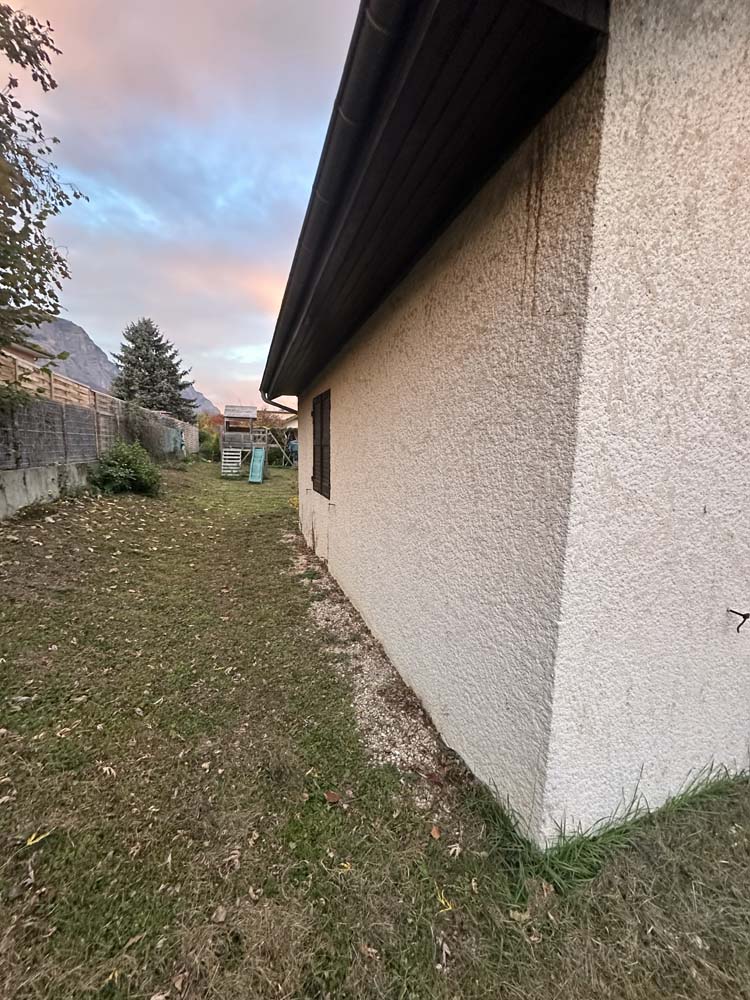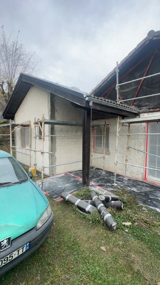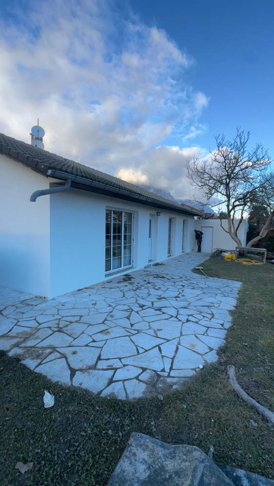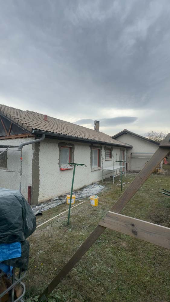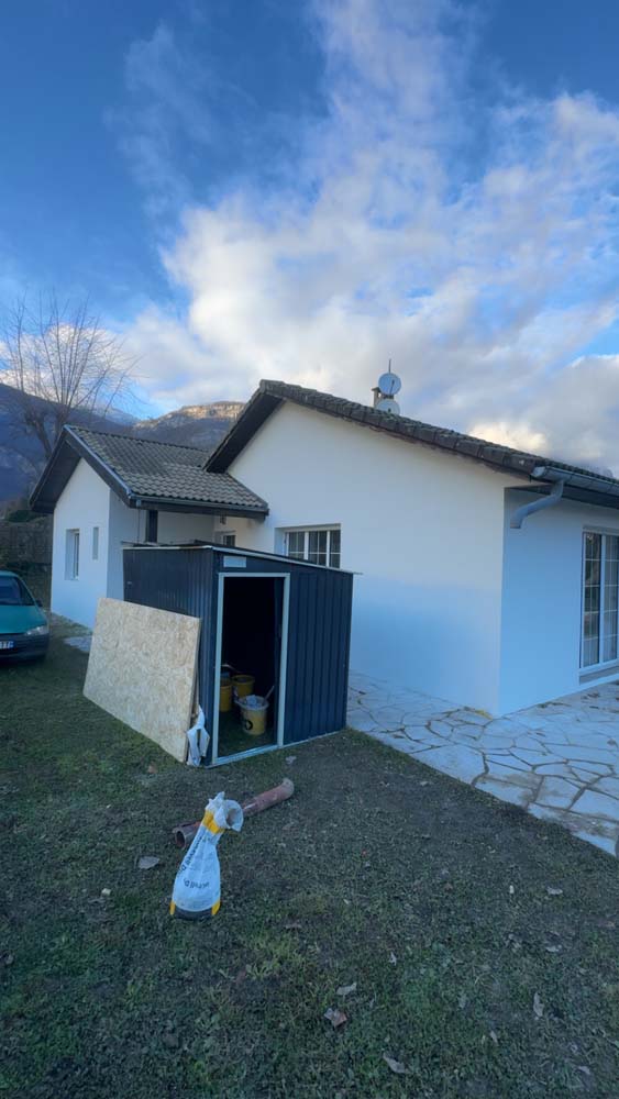 Travaux de ravalement de façade en deux couche de sous enduit et une dernière d’un crépi fin talocher grain 1,5 mm .