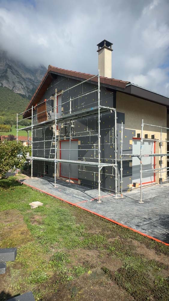 Travaux d’isolation thermique par l’extérieur en Isère, sur la commune de Saint Ismier.